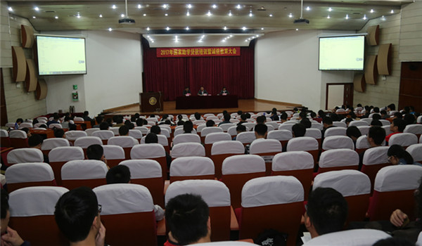 11月8日下午,学生工作部(处)在东区水上报告厅召开2017年国家助学贷款培训暨诚信教育大会。中国银行合肥南城支行有关领导及业务代表,学生工作处领导老师、各学院新生辅导员班主任及新申请贷款同学200余人参加了会议,会议由学生工作部(处)副部(处)长李峰主持。