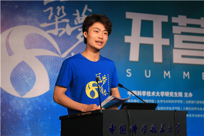 哈尔滨工业大学的管志梓同学代表全体营员发言:“走进科大,仿佛置身一方净土。没有车马喧嚣,没有市井浮躁。满目所见,是行色匆匆、背着双肩包的师生;两耳所闻,是关于课程公式、实验数据的探讨。他们是我们学习的榜样。夏令营这段经历将会开启我们对科学的热情,让我们更好地投身到今后的学习与科研之中。科大一定不会让我们失望!”