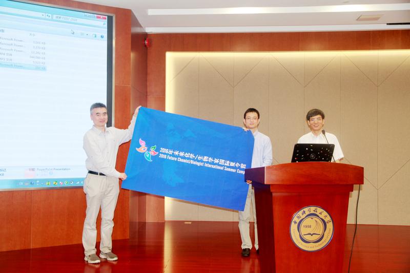 陈初升副校长致欢迎辞。他首先对来自世界各地的大学生们参加本次夏令营表示热烈欢迎。他指出,我校已连续四年成功举办“未来科学家”国际夏令营,中国科大具有“小而精”的本科办学传统和一流的基础科学研究成果,希望通过邀请来自于世界一流高校特别是有志于投身基础科学研究的学生与我校本科生相互交流,建立友谊,增进合作。随后,陈初升副校长分别向物理分营和化学/生命分营授予夏令营营旗。