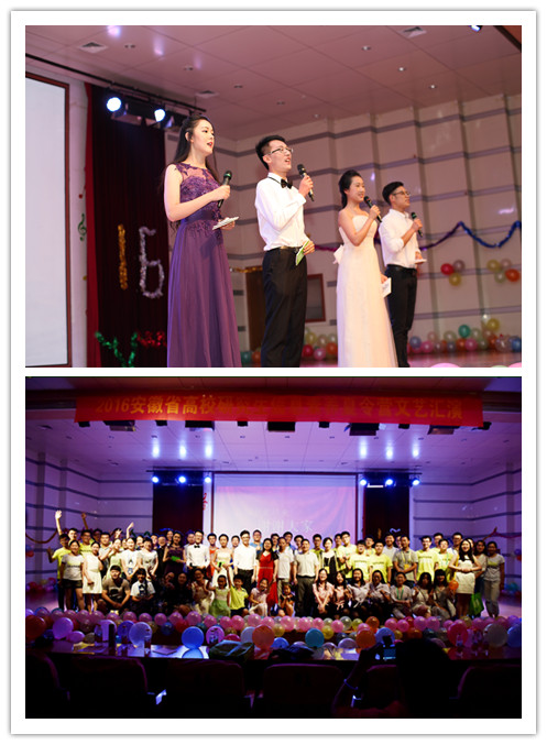 7月14日下午,文艺汇演在西区学生活动中心拉开帷幕。汇演节目有小品相声、诗歌朗诵、劲歌热舞、人影木偶戏、健身气功五禽戏等27个节目。安徽财经大学的《图书馆的故事》用多种方言朗诵,别开生面;安徽农业大学的《甄嬛后传》爆笑全场;铜陵学院的手语表演《爱因为在心中》动人心弦;中国科大《漫谈女生》机敏幽默,全场迎来小高潮。
