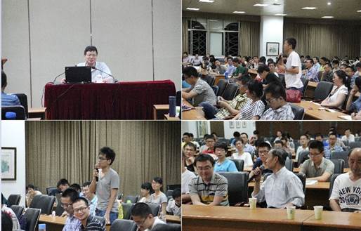 在随后的交流互动环节中,吴忠超博士对同学们提出的关于黑洞的无毛定理、暗物质和暗能量、霍金的无边界条件、超大质量黑洞如何形成等问题进行了解答,与会的程福臻教授、蔡一夫教授、赵文教授也与同学们进行了沟通和交流。此外,吴忠超博士也对科大学子在学习和成长过程中遇到的一些困惑提出了建议,勉励学习物理的同学们务必要注重微积分和大学物理这两门基础课程的学习。