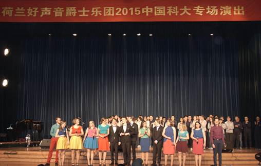 伴随着由荷兰音乐家们和我校学生合唱团共同带来的《歌声与微笑》,饱含着对这一晚天籁之音的陶醉与不舍,全场观众对远道而来的朋友们报以最热烈的掌声,两个小时的荷兰好声音爵士乐团2015年中国科学技术大学专场演出圆满结束!