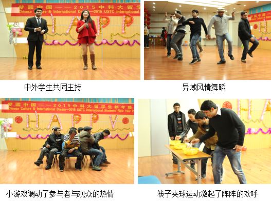 1月6日晚,“梦圆中国—2015中科大留学生新年晚会”在西区活动中心举行,整台晚会内容丰富,既有来自留学生各自国家的歌舞,又有中国学生的英文演唱,不同文化相互交融,碰撞出了热情的火花。