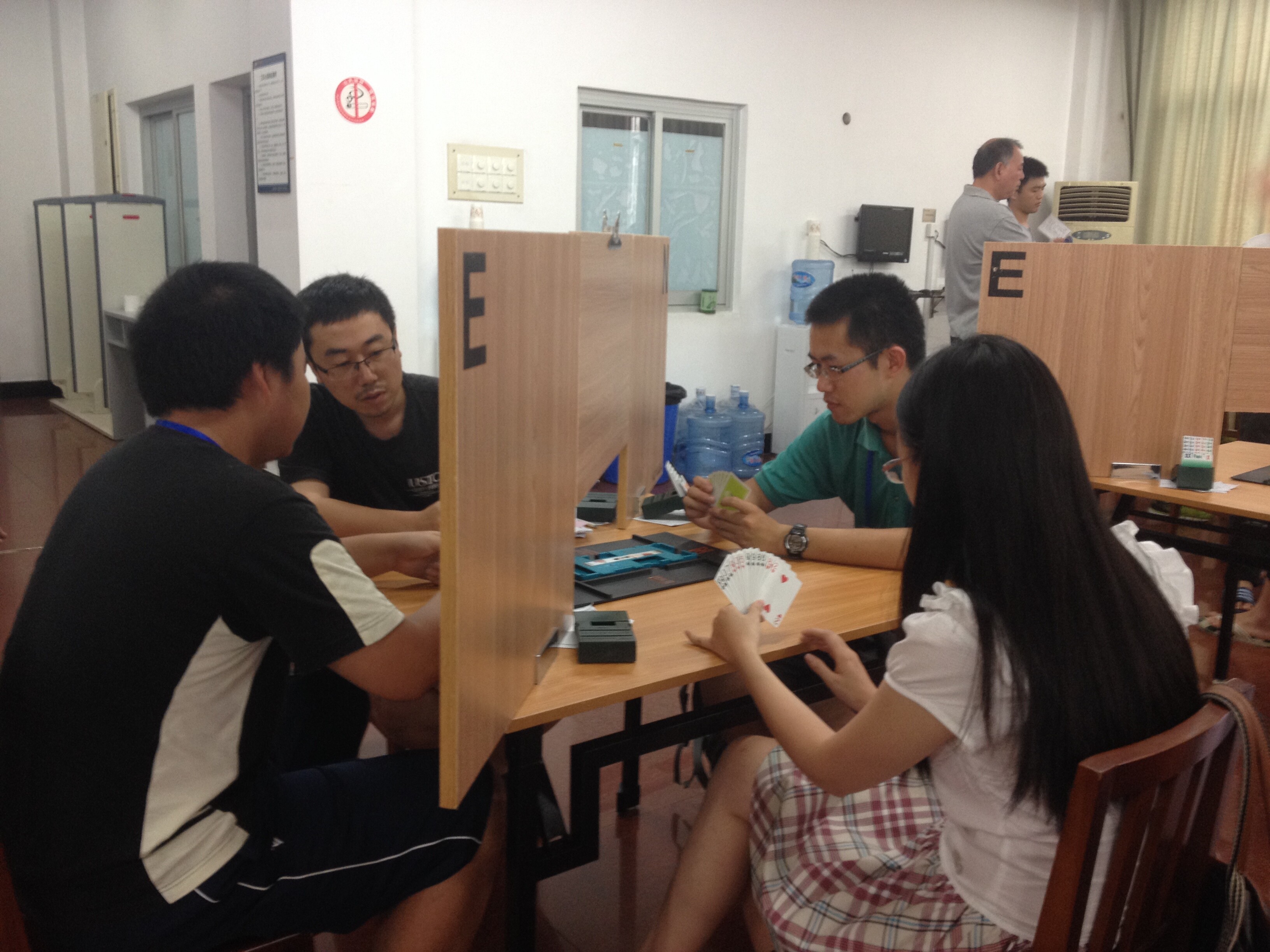 日前,2014年全国大学生桥牌锦标赛在湖南长沙举行。本次比赛由中国大学生体育协会批准,中国大学生体育协会桥牌分会主办,湖南大学承办,共有24个省市自治区49所高校的429名牌手参加。比赛设公开团体、女子团体、混合团体、公开双人、女子双人和混合双人6个项目。