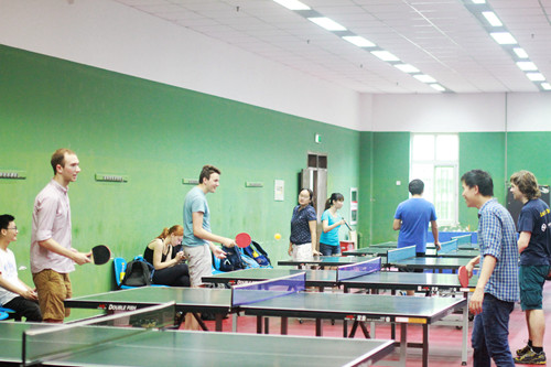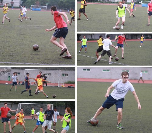 除了组委会组织的常规活动,大家还自发组织了乒乓球和足球友谊赛。在足球赛中,营员们不管球技如何全都上场,跃跃欲试。当然营员中也不乏球技高超之人,来自美国的Kendall比赛中一记中场吊射破门技惊四座,来自英国的Bethan虽为女将长传过人也样样在行。大家在汗水与欢笑中共享运动的欢乐。