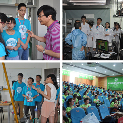 如果说学术报告让营员一睹大师风采的话,那么6日与7日下午的实验室参观则给营员们与一流科研平台亲密接触的大好机会。营员们参观了中国科学院量子信息重点实验室,了解了大量子光学研究组和集成光学研究组的最新研究状况和取得的主要成果,营员们还在师兄师姐的带领下穿上白色隔离服,参观了超净室。在等离子体物理实验室,郑坚教授详细讲解了激光等离子物理,孙玄教授和马锦秀教授分别向大家展示了KMAX装置实验装置和双等离子体实验装置。