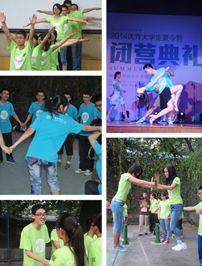 6日傍晚,物理分营开展了妙趣横生的素质拓展,营员们相互合作,共闯难关,大家还用改编的《学霸去哪儿》表达了对科大浓厚学术氛围的神往,“学霸学霸,你要去哪里呀。有学霸在就天不怕地不怕。教授教授,你是我的榜样,一生陪你发Nature”。9日,化学分营晚会上,有人嘻哈搞怪,三句半、小品妙语横生,让人忍俊不禁;有人身姿曼妙,敏捷而轻盈的舞步,让人赞不绝口;有人歌喉响亮,深情款款的演唱让人如痴如醉;有人多才多艺,吹拉弹唱,样样精通让人惊羡不已……来自东北师范大学的陈奕臻是个安徽小伙儿,在东北读书的他也感染了东北汉子豪爽的个性。当表面大大咧咧的他拉起小提琴、专注演唱时,成功地吸引了大批“粉丝”。