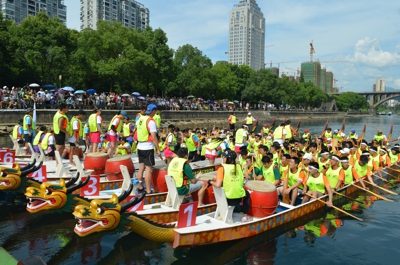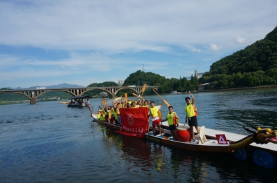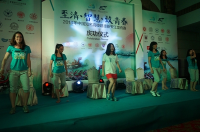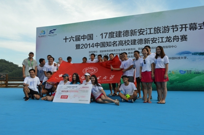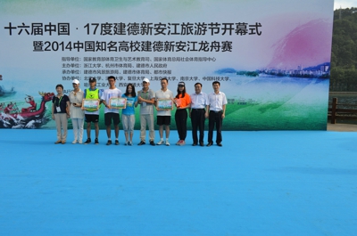 7月17日下午,“第十六届中国·17度建德新安江旅游节开幕式暨2014中国知名高校建德新安江龙舟赛”在浙江省建德市新安江盛大开幕。来自北京大学、清华大学、复旦大学、上海交大、南京大学、浙江大学、西安交大、哈工大和中国科大的C9高校学子们欢聚在夏日寒江之上,用汗水书写属于自己的青春记忆。最终,中国科大代表队以绝对优势在10公里绕标拉力赛中率先冲过终点夺得冠军,并与浙江大学、复旦大学同获一等奖。