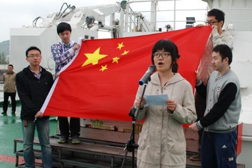 上午八时许,十八岁成人宣誓仪式在远望2号测量船平台准时开始。出席仪式的有测量船领导、校学生工作部部长董雨、校选培办周建新、少年班学院执行院长陈旸、院党总支书记尹民。仪式由少年班学院团总支书记赵林主持。