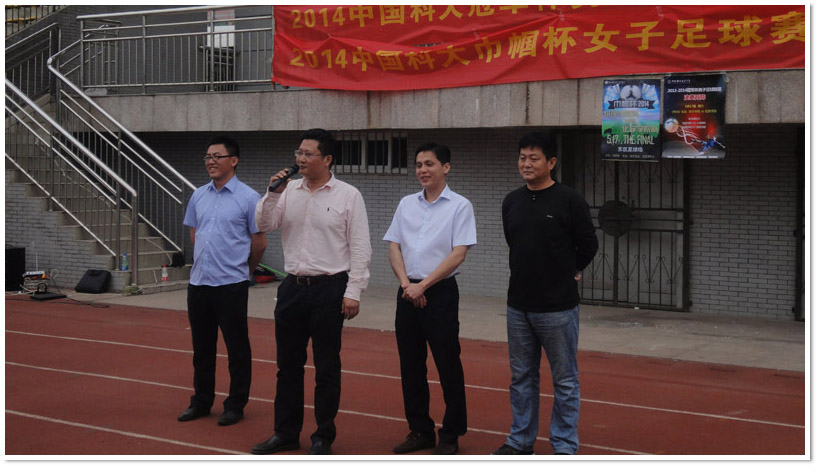 5月17日中午,2014中国科大“巾帼杯”总决赛暨闭幕典礼在东区操场举行,校党委副书记蒋一、校体育教学部主任曾文、校团委书记杨正,校团委副书记张平观看整场比赛并出席了闭幕式颁奖仪式。