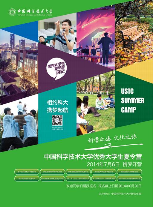今年我校夏令营将继续“扩营”,在去年的基础上新增举办三个夏令营,夏令营将达到十个,分别是:第五届物理化学夏令营,第七届黄山生命科学夏令营,,第四届大学生数学夏令营,第四届交叉学科夏令营,第五届大别山地质考察暑期夏令营,第三届高低空大气探测夏令营,第二届力学与工程科学夏令营,第一届技术物理夏令营(科学岛),第一届信息科技夏令营,第一届计算机科学夏令营。这些夏令营覆盖我校所有的理工科专业,其中技术物理夏令营(科学岛)、信息科技夏令营、计算机科学夏令营是今年新增的三个营。本年度夏令营计划招收A类营员1000人,B类营员500人。