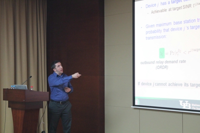 30日上午,Mastronarde博士在西区科技楼语音实验室第一会议室为我校师生上了一堂题为《博弈论简介及其在资源分配中的应用(Introduction to Game Theory with Applications to Resource Allocation)》的公开课。对在场的大多数同学们来说,博弈论是一个崭新的知识,因而此次授课虽然简短,但却让大家受益颇丰,意犹未尽。