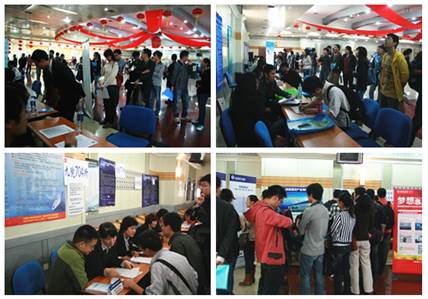 截止目前,就业办已与180余家用人单位确定举办专场宣讲招聘会,包括组团单位在内,共已有350多家单位来校招聘。十一月份专场招聘会每天持续举办,11月10日无锡市人才中心将组团来校招聘,学校还将于本月26-27日举办秋季大型毕业生和用人单位双向选择洽谈会。为邀请更多的用人单位来校参加双选会,就业办已通过网络、邮件、电话等方式广泛发布邀请函3000余封。另外,每天在就业信息网上发布招聘信息,近两个月已发布招聘信息600余条。为更好地服务用人单位,就业办在招聘会现场设立“就业办服务台”,每场宣讲会安排老师前往招聘会场,加强与用人单位的联系沟通,并接受同学们各种就业咨询,现场为同学们提供就业服务。