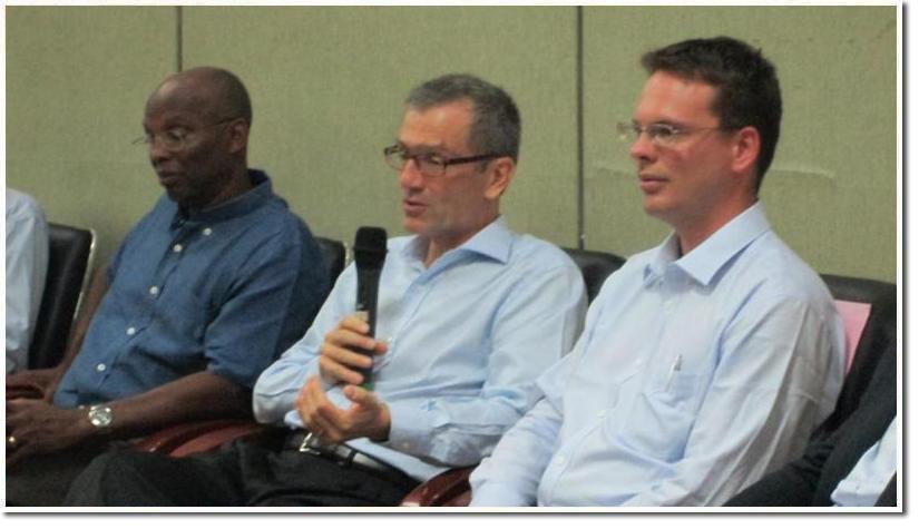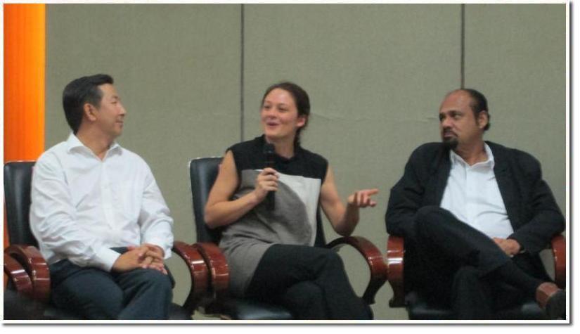 在现场自由阶段,同学们就学术前沿、文化差异、社会时事、团队合作、个人发展等各个方面的问题踊跃提问,教授们坦诚幽默地逐一耐心解答,现场气氛轻松愉快,掌声不断。值得一提的是,两个专场里都只有一位女性“大牛”,她们自然成为了大家发问的焦点。在地球科学专场,Bosak教授愉快地向大家解释女性在自然科学领域同样能做出成果,并且以自身经历安慰大家不用担心女博士嫁人难。在物理化学专场,一位女生直接向崔便晓教授提问“做科研的女性什么时候结婚比较好”,崔教授做出了“我们是科学家,同时也是人”的睿智回答,指出科研需要高度集中注意力,不过安排得当的话还是可以科研家庭两不误的,赢得了现场同学热烈的掌声。