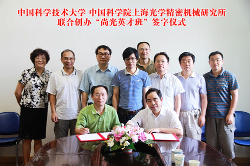 9月1日上午,物理学院与中国科学院上海光学精密机械研究所签署合作协议,联合创办“尚光英才班”。中科院上海光学精密机械研究所党委书记、副所长邵建达研究员,研究生部主任韩申生研究员,人教处副处长丁虹等一行4人,物理学院执行院长刘万东教授、分党委书记兼副院长叶邦角教授、副院长王冠中教授、分党委副书记张增明教授、光学与光学工程系系主任韩正甫教授、近代物理系系主任陈向军教授、尚光英才班项目主管王安廷副教授等出席了仪式。