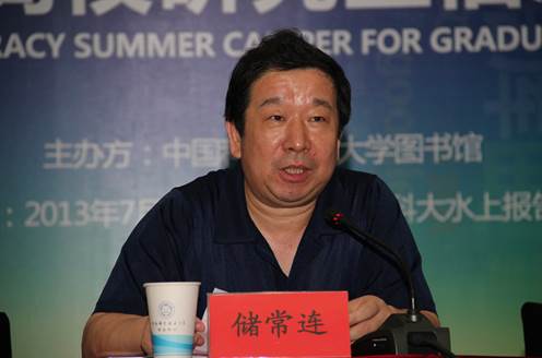 储常连处长在讲话中指出,建设安徽省数字图书馆是推动安徽省成为高等教育强省的重要举措,此次夏令营活动必将提高营员们信息素养水平,提升安徽省的科研创新能力,推动安徽省高等教育质量。希望科大图书馆起到总领和带头效应,推动全省统一规划的、多层次的文献服务保障网络的建设。