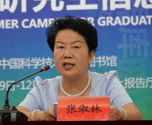张淑林副校长对来自省内各高校的营员们表示欢迎。她简要介绍了中国科大建校历史与发展情况,指出科大图书馆一直在积极探索与实践渗透式创新服务模式,努力实现传统图书馆向数字图书馆的转变,致力于提供高效率、高质量的文献资源信息保障与服务。她勉励营员们不断进行科学探索,早日登上科学高峰,并预祝本次夏令营圆满成功。