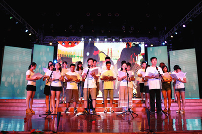 7月12日晚的东活大礼堂光影璀璨、如梦如幻,1261名优秀大学生夏令营营员齐集此处,运笔留言,合影留念,拥抱留情……半小时喧闹之后,全场霎时无声,2013年优秀大学生夏令营闭幕仪式、全体夏令营营员自编自演的视听盛宴在这里精彩上演。