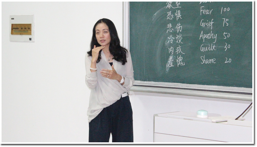 仪式之后,我校8111校友吴雪筠作为“阳光印迹”基金支持的首场活动特邀嘉宾,为同学们做了“阳光心态,幸福印迹”的主题交流报告。