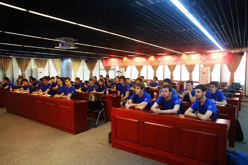 本次夏令营还为各国学生精心筹备了多种了解中国文化的活动。当日下午,我校汉语教师还在5207教室为全体营员带来了一堂生动有趣的汉语课。课上不仅向全体营员讲授日常汉语的发音和含义,并将中国传统文化、美食美景融汇其中,生动的授课形式、愉快的课堂气氛使教室中不时传来阵阵笑声。在随后的自由交流中,国外营员对中国文化和汉语的魅力显示出极大的兴趣,用刚学会的汉语积极与国内营员交谈。