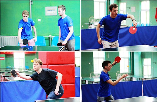 随后,营员们来到我校体育与教学中心乒乓球室。在志愿者和体育老师示范之后,在场国内外营员均表现出极大热情,并积极切磋球艺。