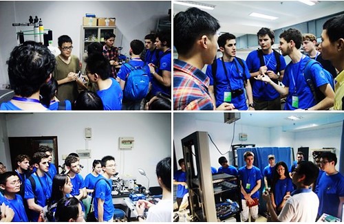 当日下午,全体营员来到近代物理系,参观了杜江峰教授所在的“自旋磁共振实验室”。实验室成员简要介绍了运转中的实验设备,并回答了各国营员的提问。