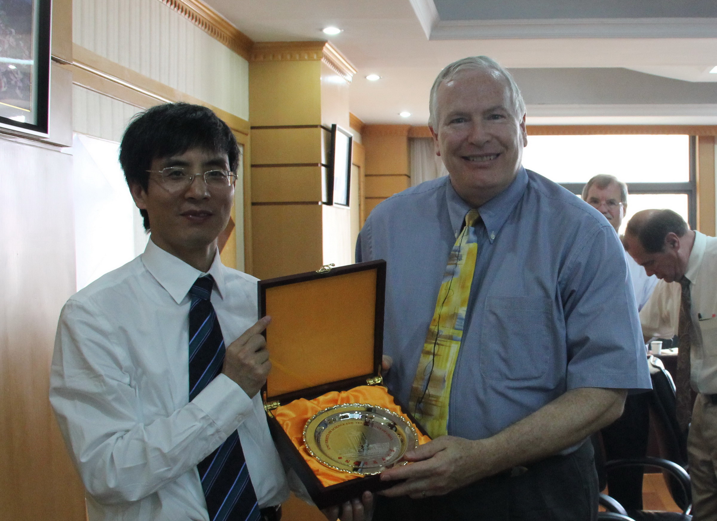 陈初升副校长在行政楼第三会议室会见了代表团一行,他向代表团简要介绍了我校的办学历史和发展目标、英才教育与学术优势。Robert V. Duncan教授、工程院院长James E. Thompson教授、研究反应堆主任Ralph A. Butler博士及教务长助理Annette L. Sobel博士分别介绍了密苏里大学的传统和特色、科研基金、优势学科(植物分子学和核科学技术等)、学生创业项目以及国际师生交流项目等。双方均表示将努力推进建立更加具体全面的科研合作与学生交流项目。