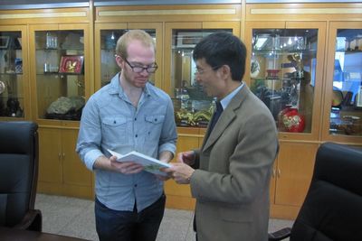 会谈结束后,陈初升副校长向代表团成员赠送了印有我校风景的笔记本礼品,并应昆士兰大学生命科学专业博士生Michael请求,欣然在其笔记本上签名并用中文写下了对他学业和生活的祝福。