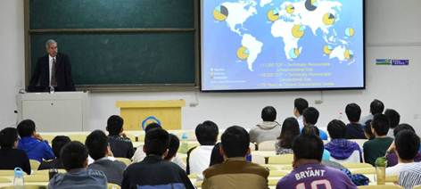 当天下午,Zoback教授做了关于页岩气开发方面的学术报告。200多名师生参加了本次报告会。该报告以页岩气的勘探开采和潜在的环境问题为主题,讨论了页岩气的构造、分布和当今开采所使用的水力压裂法。他还谈到了开采过程中潜在的环境问题,如水力压裂将会释放大量的温室气体甲烷,可能导致水源污染,改变地应力诱发地震等问题。Zoback教授还指出,要实现页岩气的大范围开采,必需考虑并规避水力压裂可能带来的风险。随后,Zoback教授与现场同学展开交流。同学们都非常积极地向Zoback教授提问有关页岩气开采技术的具体问题。