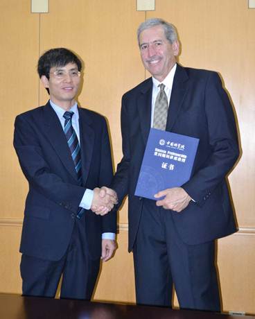 9日上午,陈初升副校长会见了Zoback教授,并代表学校为Zoback教授颁发了中国科学院爱因斯坦讲席教授荣誉证书。会见中,陈初升介绍了我校近年来取得的进步和发展。Zoback教授是国际著名的页岩气开发专家,他介绍了石油开采、新能源开发等领域的前沿科研成果。双方还交流了各自研究领域的发展形势,并就共同关注的课题展开了讨论。