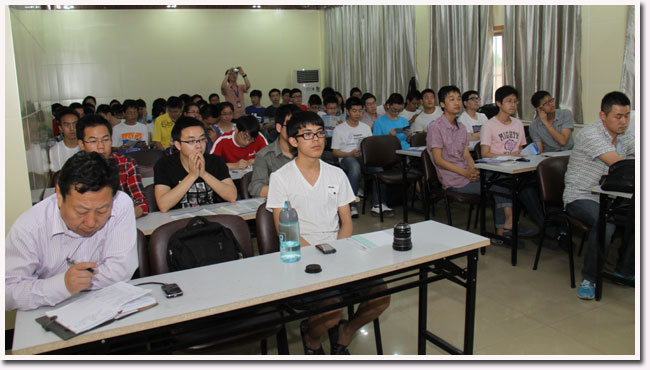会上宣读了学校授予4名同学2013年度“成都光电奖学金”的决定,鹿明和范天泉共同逐一为获奖同学颁发了获奖证书,并与他们合影留念。颁奖典礼后,范天泉研究员作了题为《光电测控技术现状与发展趋势》的报告,结合学生的提问,他还介绍了成都光电所的科研实力、生活条件、工作待遇和就业前景等情况。