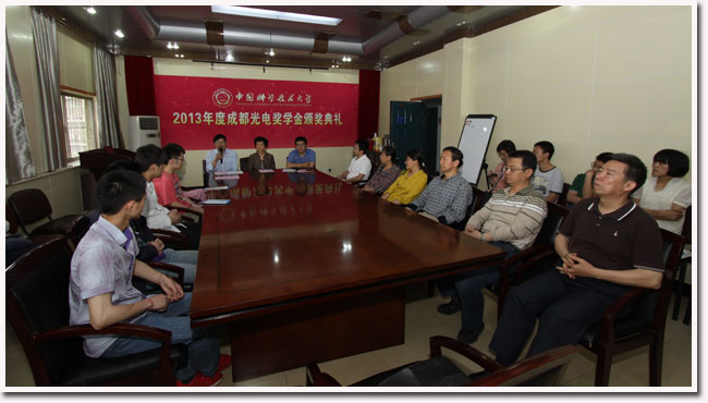成都光电所始建于1970年,是中国科学院首批定位于科研基地型研究所之一,研究工作国内一流、国际知名。为促进我国光电技术科学水平的不断提高,促进人才培养,鼓励在校学生勤奋学习、刻苦钻研,该所于2006年在我校设立了“成都光电奖学金”,目前已有69人获奖,获奖者每人可获得3000元人民币的奖励。