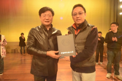 许武书记向宋怀强教授颁发了聘书,并在致辞中强调,宋怀强教授在音乐剧的排练中言传身教,不仅教同学们如何把戏演好,更教大家如何做人,使人们从他身上感悟到什么是“为人师表”。他感谢宋教授为中国科大做出的贡献,并预祝《爱在天际》北京演出成功。