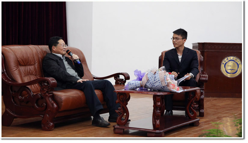 随后,主持人对郑院士进行了现场访谈。从郑院士如何走上地球化学的研究道路开始,到如何培养学生、如何看待自己取得的成绩等,郑院士对每一个问题都详细回答,深深地吸引了同学们。谈到培养学生时,郑院士认为导师起到非常关键的作用,导师要针对学生的情况指导学生,在各方面都要严格要求学生,培养学生养成好的习惯,一步步取得成功。在问及什么是最大的成功的时候,郑院士回答说:“当我培养的学生超过我时,我会认为这是我最大的成功。我非常期待这一天的到来。”他的回答赢得了阵阵掌声,现场气氛十分热烈。