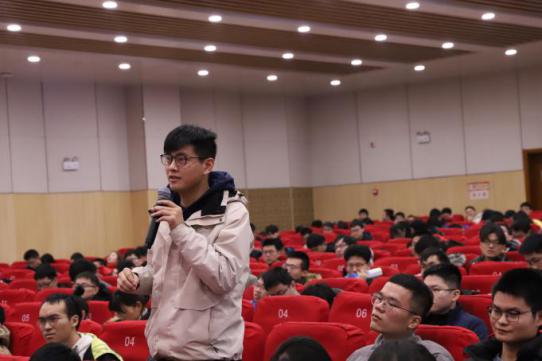 主会场特邀报告在中国科大西区活动中心二楼礼堂举行,现场座无虚席。程文龙教授、刘诚教授和李二强教授分别介绍了“储能材料及其在冰箱节能中的应用研究”、“光学遥感在大气环境中的应用”和“液滴撞击中的溅射与气体截留”,从不同角度展示了工程科学研究的最新前沿进展和重要应用领域。同学们踊跃提问,嘉宾们也给出了耐心细致的解答,赢得了全场热烈的掌声。
