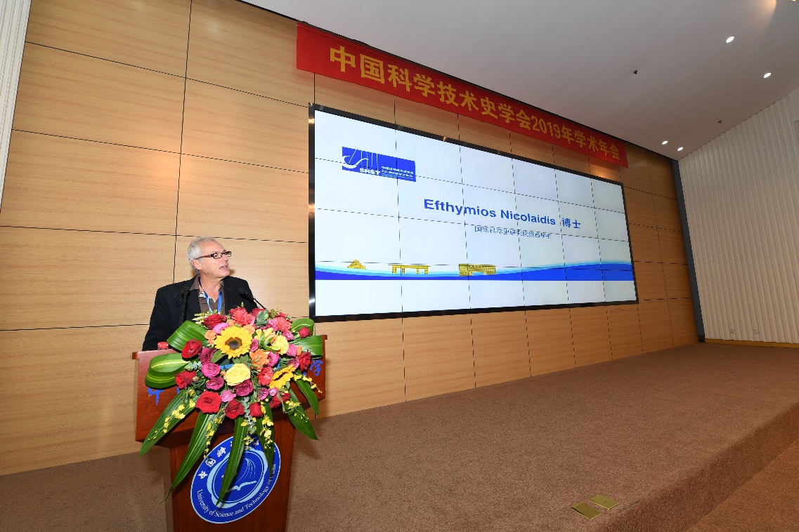 Nicolaidis教授首先祝贺本次年会成功召开,他指出,国际科学史研究院中有越来越多的中国的科学史研究者成为会员,中国科学史的国际影响力正在不断增加,而今年的柯瓦雷奖正是由中国学者刘钝教授获得的,祝贺中国科学史学会未来能够取得更辉煌的成就。广西民族大学万辅彬教授在致辞中说,当前许多国内一流高校都设立了科学史学科点,标志着中国科学技术史学科发展的春天已经到来。