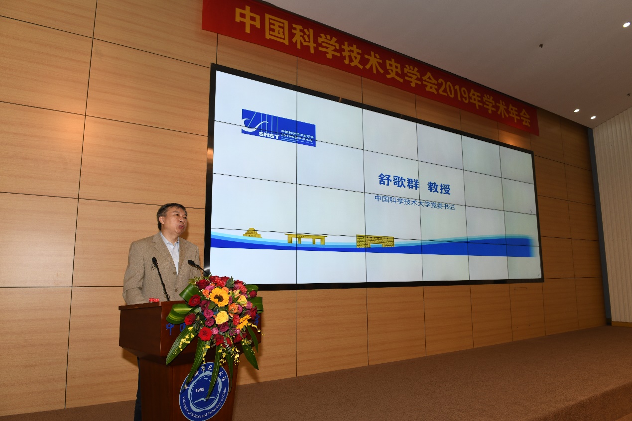 开幕式由中国科技史学会副理事长关增建教授主持。中国科大党委书记舒歌群首先代表承办方中国科大致欢迎辞。舒歌群在致辞中指出,中国科大与科技史学会有着天然的联系。1980年学会成立时,时任科大副校长的钱临照院士担任了学会首届理事长。众所周知,科学文化,尤其是科学技术史,对学生的成长成才具有重要作用。未来我们培养的引领性人才不仅要具有专业技能和创新能力,更需要有科技史的基本素养。今年5月,学校专门召开了科技人文发展专家咨询会,共谋新文科发展战略,以期培养出能够预见科技发展引发的社会影响、以人道方式处理科技问题的新型人才。本次年会恰逢中国科大科技史与科技考古系建立20周年,希望学界同仁谋划发展,共同推动科大科学技术史学科和我国科技史事业的进步。