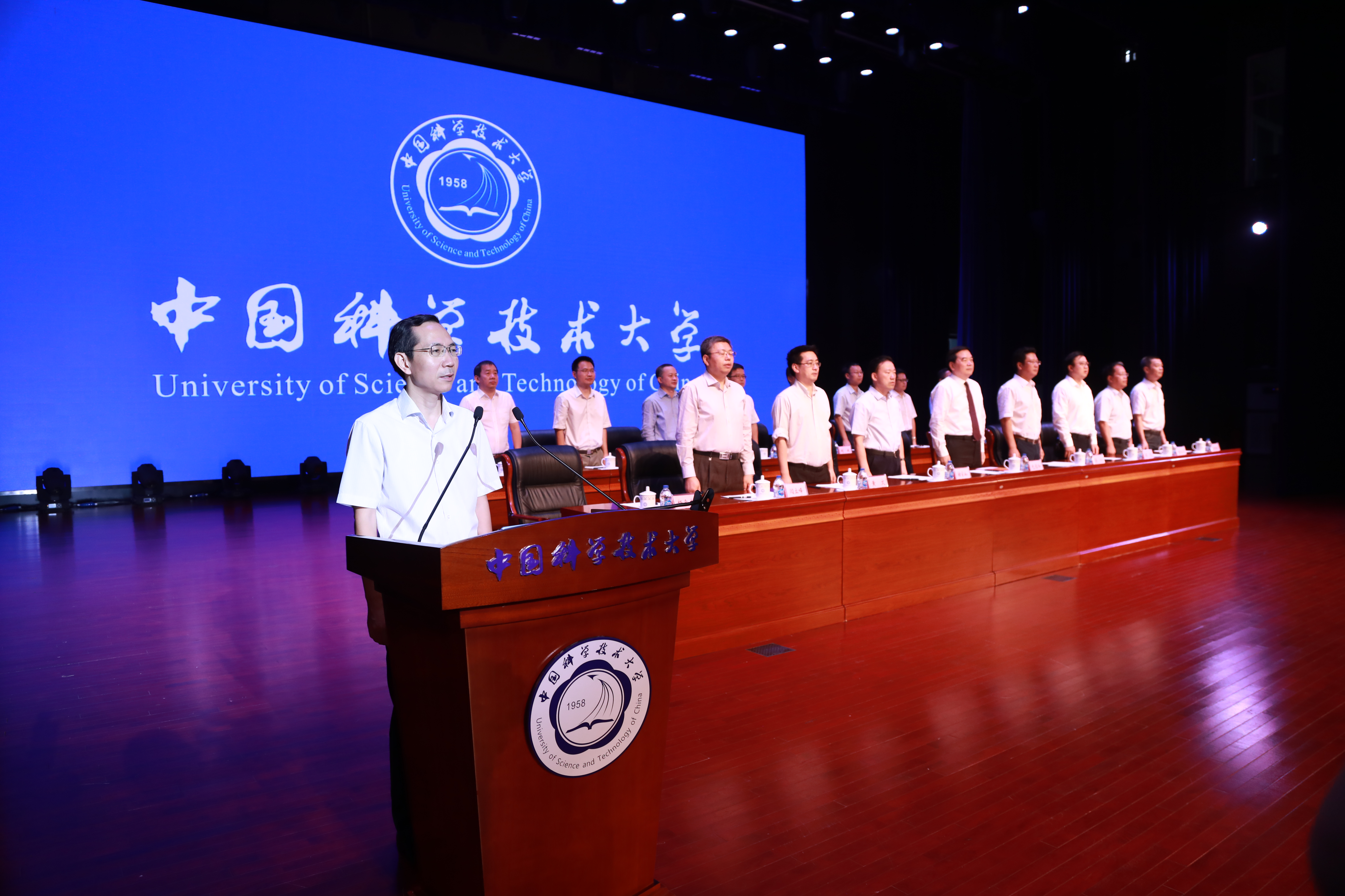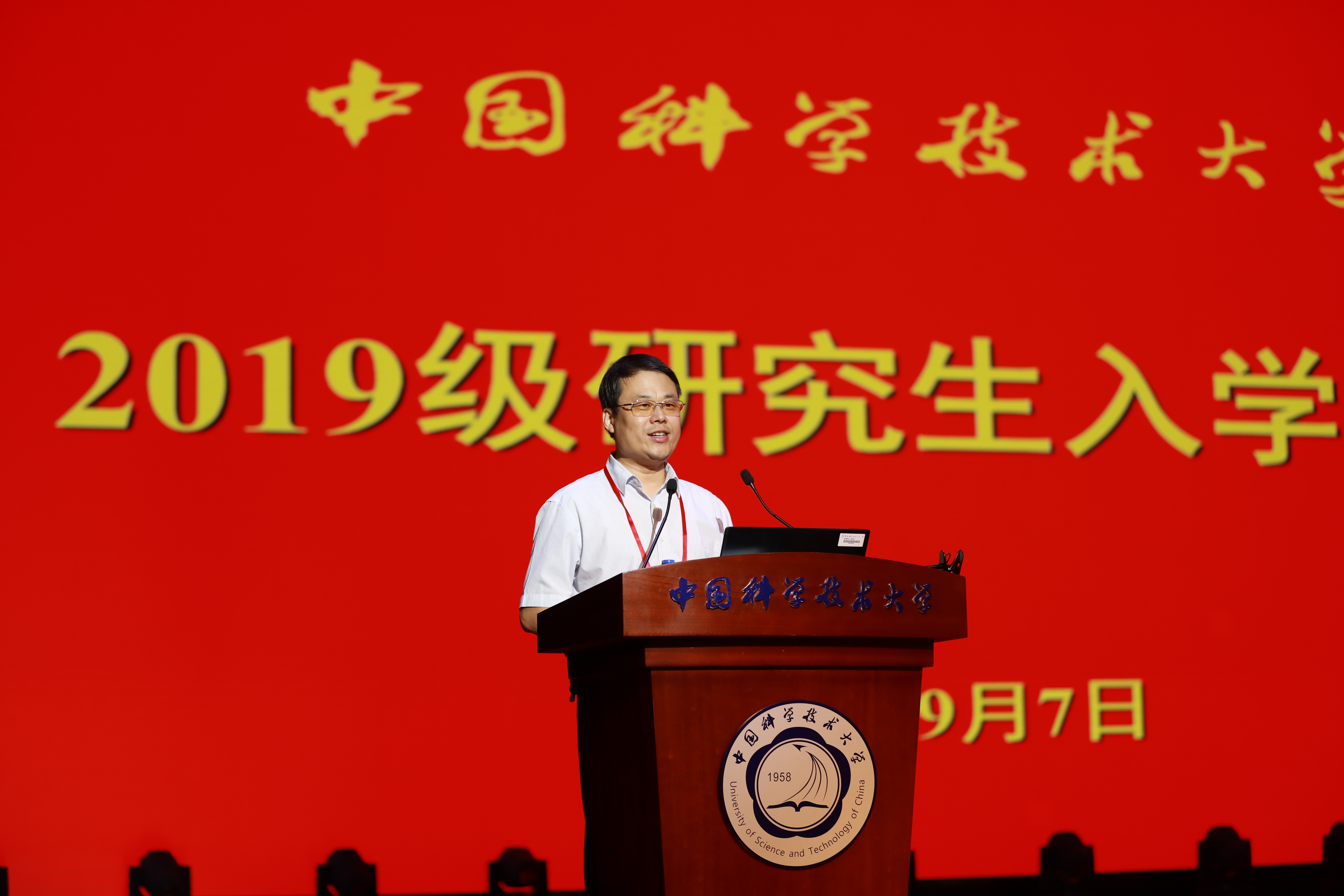 9月7日上午,中国科大2019级研究生开学典礼暨入学教育在东区大礼堂隆重举行。校长包信和,校党委副书记蒋一,校党委常委褚家如,校党委常委、校长助理、秘书长傅尧,数学科学学院党委书记、副院长黄文,物理学院党委书记、副院长陈向军,化学与材料科学学院党委书记、副院长闫立峰,工程科学学院党委书记、副院长刘明侯,信息与智能学部党工委书记、副部长、信息科学技术学院党委书记陈卫东,地球和空间科学学院党委书记、副院长刘斌,附属第一医院副院长、临床医学院执行院长翁建平,计算机科学与技术学院党委书记徐宏力,管理学院党委书记古继宝,人文与社会科学学院党委书记褚建勋,合肥微尺度物质科学国家研究中心主任罗毅,火灾科学国家重点实验室主任刘乃安等出席了开学典礼并在主席台就坐。机关相关部门负责人和研究生新生参加了开学典礼。