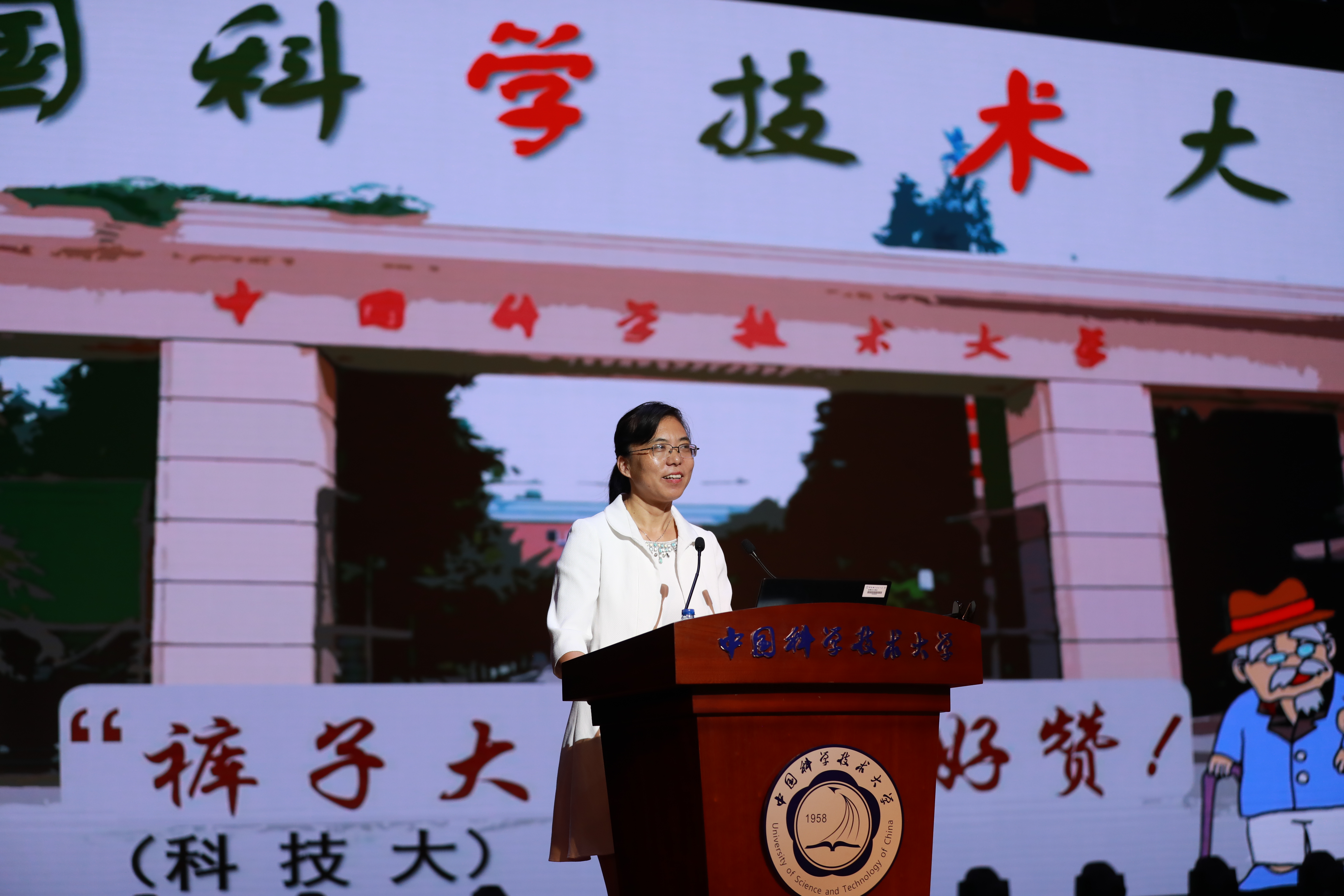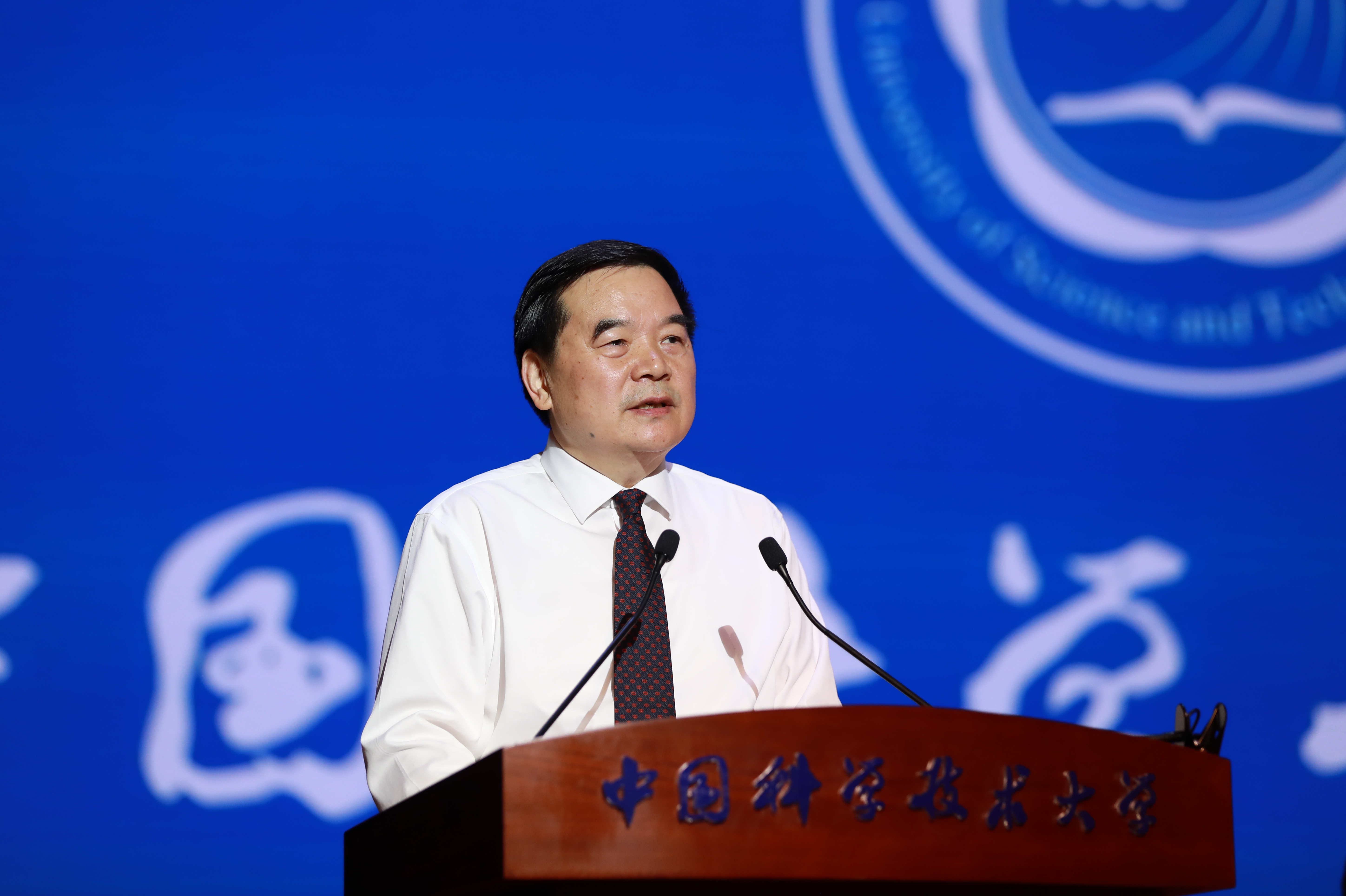 包信和校长代表全校师生员工向来自五湖四海的同学们表示衷心祝贺和热烈欢迎,向新生的父母和亲友致以诚挚问候和衷心感谢。他说,再过20多天,我们将喜迎新中国成立70周年。在执教于中国科大的老一辈科学家“爱国奉献、求实创新”的精神激励下,从“两弹一星”到探月工程,从高温超导到量子通信,一代代科大人坚守“科教报国、追求卓越”的初心和使命,把红旗插上科学的高峰,在新中国70载壮丽史诗中书写了科大人的精彩诗篇,也使中国科大成为一所因创新而屹立的大学。