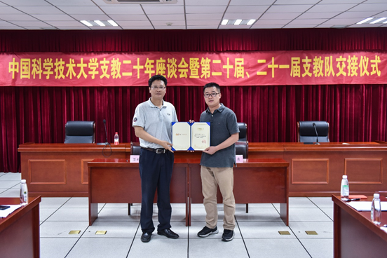 7月17日下午,中国科学技术大学支教二十年座谈会暨第二十届、二十一届支教队交接仪式顺利举行。校党委副书记蒋一、捐赠校友代表、校内一直关心支持支教工作的职能部门领导、历届支教队员代表及第二十届、二十一届支教队全体队员出席了本次会议。会议由校团委副书记赵林主持。