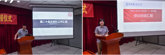 第二十一届支教队队长张晓雅从团队建设、教学培训、体能训练、心理素质拓展、团学工作技能、医疗急救与厨艺培训等方面总结汇报了第二十一届支教队在过去一年中的工作。第二十一届支教队总结了往年支教团培训情况,充分结合当前“中国科大接力班”的现状,以教学培训为核心,将六大类培训分配到人、落实开展。一年来的培训使每位队员都有了不小的收获。大家不断学习技能,体会到成为一名优秀的支教教师不是一件容易的事。经过充分的准备,每位队员更加明确了责任与使命,有信心胜任支教地的各项工作。
