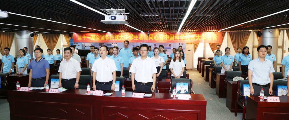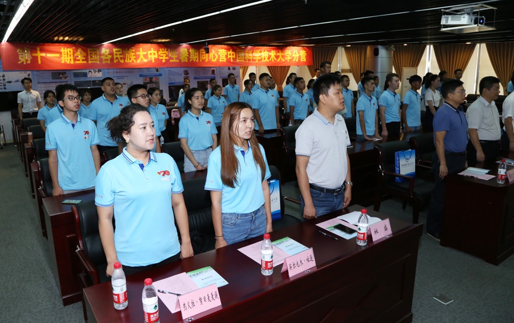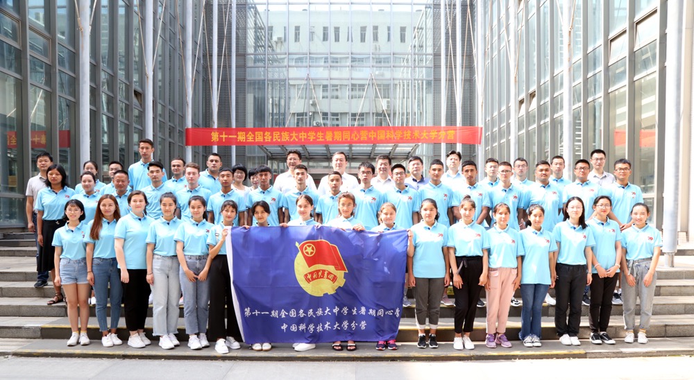 7月22日上午,第十一期全国各民族大中学生暑期同心营中国科学技术大学分营开营仪式在东区理化大楼科技展厅举行。共青团安徽省委党组书记、书记孔涛,中国科学技术大学党委副书记蒋一参加仪式并分别讲话。新疆驻皖工作组党委书记、组长、省维稳办副主任陈翰林,安徽省合作交流办副主任李定松,共青团安徽省委党组成员、副书记张敏出席仪式。新疆和田、安徽当涂两地的中学生代表和带队老师、中国科大志愿者,共青团安徽省委相关部门、中国科大团委负责同志共40余人参加开营仪式。