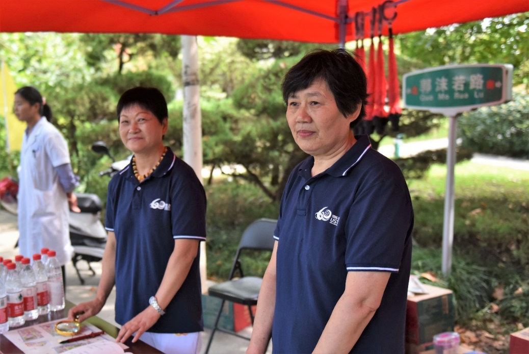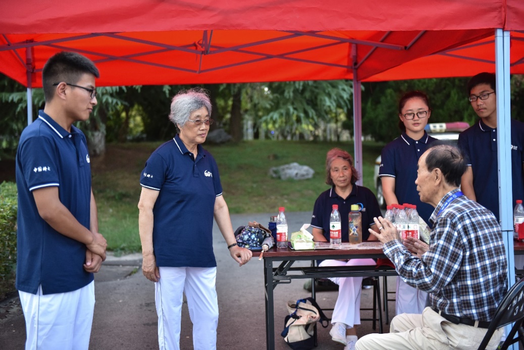 校园入口、图书馆旁、活动中心前……随处可见的红色帐篷引人注目,散发青春气息的学生与华发笑颜的离退休老师一起,营造出热情的志愿氛围,这里是校庆志愿服务站。