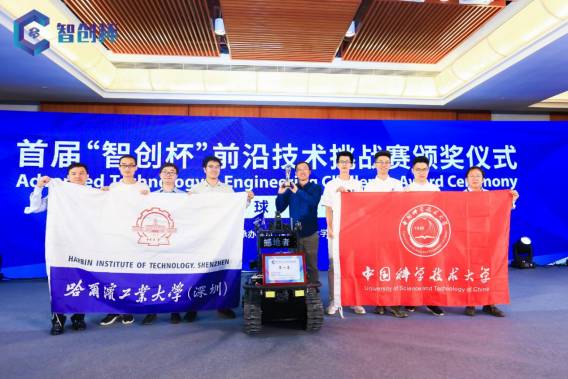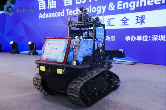 10月30日,首届“智创杯”前沿技术挑战赛颁奖仪式在深圳市市民中心隆重举行。由中国科学技术大学和哈尔滨工业大学(深圳)联合组建的瀚海南工队凭借“撼地者”机器人从海内外15支决赛队伍中脱颖而出,在以“灾后区域的探测与处置”为命题的锦标赛中摘取桂冠,并获800万元人民币奖励。