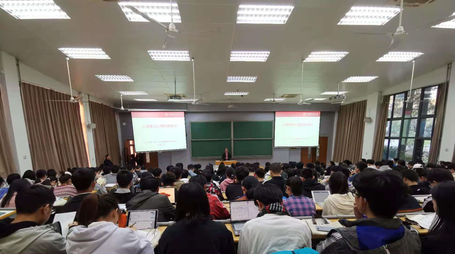 为进一步贯彻落实中共教育部党组关于《高等学校学生心理健康教育指导纲要》(教党2018〔41〕号)文件精神,提高我校心理骨干的朋辈互助知识和技能,充分发挥心理骨干助人的基础性作用,11月11日下午,我校2020级本科生、研究生新生心理骨干岗前培训开班仪式暨首场心理专题报告会在东区2121教室举行。学生工作部处长李峰、2020级全体本科生和研究生心理委员、心理中心新聘学生助理、微笑心理协会及心理委员联合会骨干成员共200余人参加了本次培训会。会议由学工部处心理健康教育与咨询中心主任沈克祥主持。