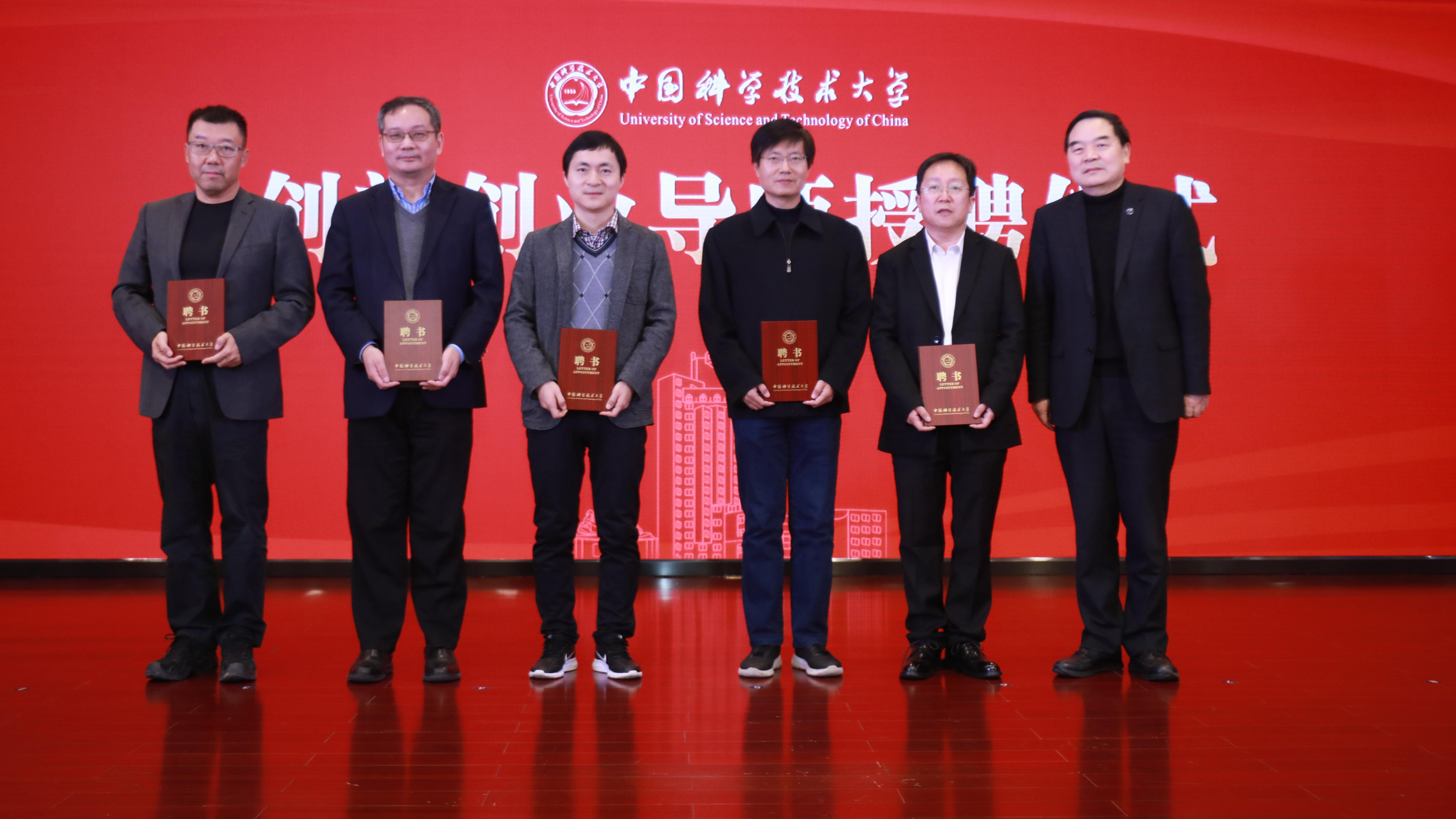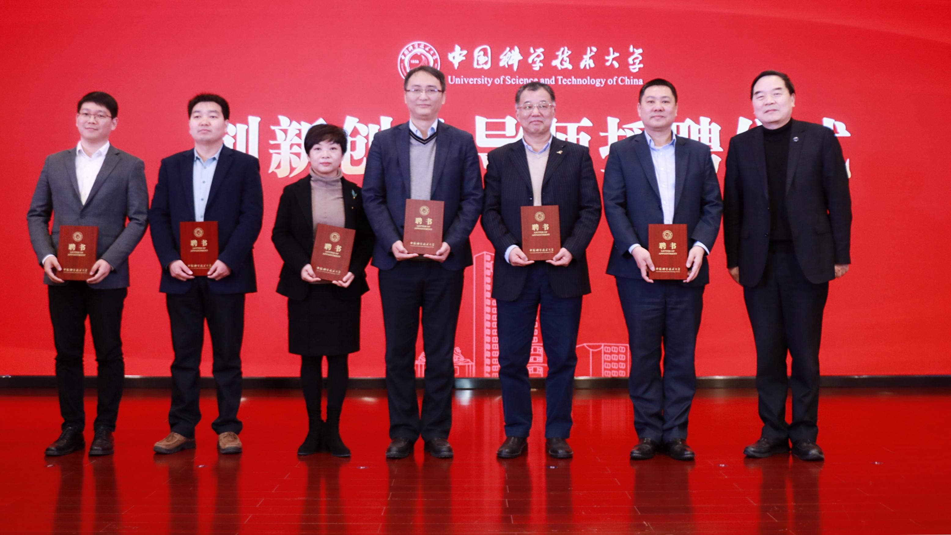 在创新创业导师授聘仪式上,包信和向合锻智能制造董事长严建文、复旦大学国际金融教授张陆洋、安徽省科技成果转化中心主任徐溪红、工程科学学院教授张世武、信息科学技术学院教授李斌等校内外专家、学者颁发我校创新创业导师聘书并向各位导师长期以来为我校创新创业教育工作所做出的辛勤付出、杰出贡献表示感谢。