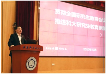 包信和在讲话中指出,“德创计划”是落实我校加快研究生教育改革创新发展的重要举措。他对前期相关工作表示充分肯定,同时针对下一步研究生教育改革发展提出几点要求:一是明确方向、提高站位。要真正把党中央关于研究生教育的指示批示精神学深悟透,围绕国家的战略需求,结合学校的学科发展目标,把研究生教育摆到更加突出的位置;二是牢记使命、用心育人。强化科研育人,加强课程体系建设,切实把学校的科研优势转化为育人优势。导师作为研究生培养的第一责任人,既要注重培养研究生专业知识和实践创新能力,也要关注研究生的思想道德素质培养,要加强人文关怀。三是聚焦问题、提高质量。要坚持问题导向,着力构建涵盖课程教学、学位论文评审答辩等关键环节的规范化质量监控机制,着力提升研究生培养质量。四是狠抓落实、注重实效。研究生院要继续细化工作任务,围绕“德创计划”战略目标,拟定相关工作细则,各研究生培养单位要把学校有关研究生教育改革决策部署贯彻落实到位,切实增强各项改革举措成效。他特别指出,当前国际国内疫情防控形势依然严峻复杂,研究生教育国际化面临重大挑战,要保持战略定力,坚持国际化发展定位,创新工作思路,加快推进校、所研究生教育国际化一体发展。