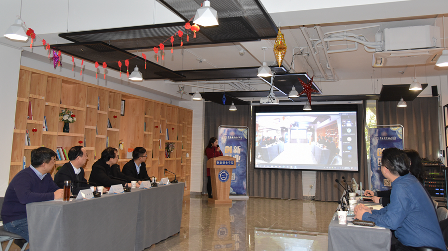1 月 18 日下午,我校第四期“创新创业教育沙龙” 在创新创业学院会议室举行。中国银行合肥分行行长陈付山,蜀山支行行长徐慧玲,安徽五十六钡教育科技有限责任公司总经理宋红彪,安徽华米信息科技有限公司公共事务总监张利,科大讯飞AI产业加速中心商务合作经理杨磊及我校党委常委、校长助理、秘书长、创新创业学院院长傅尧,创新创业学院常务副院长朱东杰等出席沙龙现场。为积极配合疫情防控,本次沙龙采取线上线下相结合的方式举行,40多家合作伙伴单位代表通过网络参加本次活动,共话校企合作推动双创教育发展,为我校创新创业教育发展建言献策。