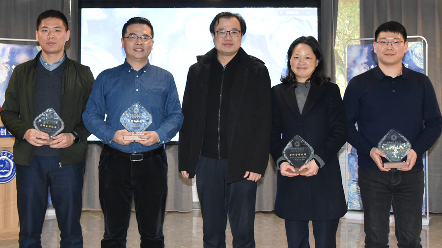 沙龙上,傅尧为中国银行、华米科技、科大讯飞、五十六钡等四个创新创业学院2020年度“金牌合作伙伴”单位颁发奖杯并感谢各单位对我校创新创业教育的贡献和支持。