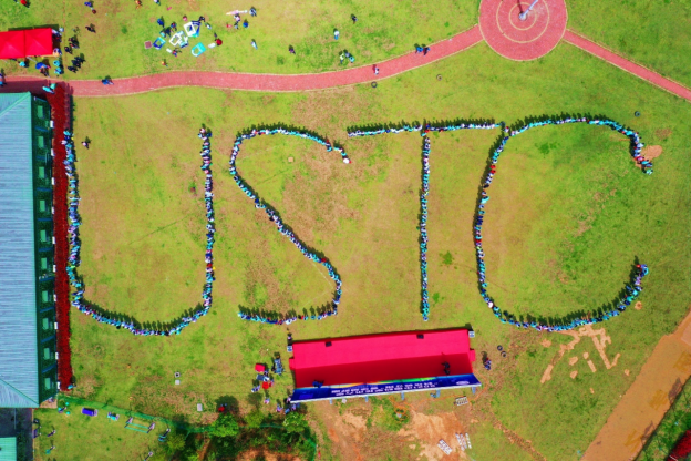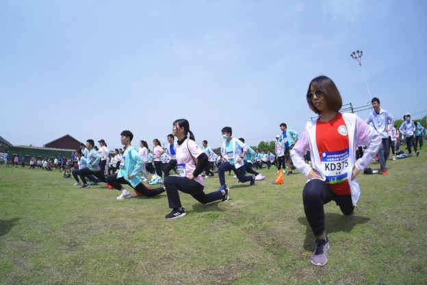 上午10点,全体师生抵达舒城万佛湖,在起跑点外的草坪上摆出USTC形状,现场气氛热烈。五彩斑斓的T恤将同学和老师们的精神面貌映衬得更加饱满。随后,全体师生在起跑点集合,在体育教学中心的老师带领下,进行热身运动,为即将开始的11公里长跑做好充分准备。